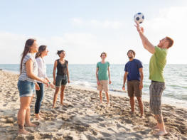 Strandspielen wie Beach-Volleyball, Catchball, Federball, Beachball, Boule, Frisbee-Zielwerfen u.v.m.