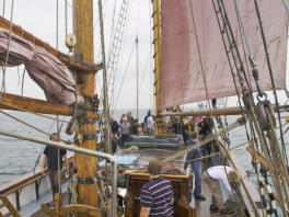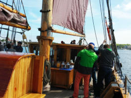 Der exklusiv fuer Sie gecharterte Traditionssegler erwartet Sie in Kiel-Innenhafen an der Bluecherbruecke. Zur Begruessung empfaengt Sie die Crew mit einem Glas Sekt. Von Bord aus koennen Sie bei einem zweiten Fruehstueck den Kieler Hafen sowie das Foerdeufer entdecken. Nachdem Ihr Traditionssegler die offene Ostsee erreicht hat, werden die Segel gehisst. Geniessen Sie die besondere Atmosphaere an Bord des Schiffes. Wer mag, kann die Skipper bei den Segelmanoevern tatkraeftig unterstuetzen. Um die Mittagszeit legt Ihr Schiff fuer einen kleinen Landgang an. Den Landgang nutzen wir fuer den Besuch eines nur wenige Schritte vom Anleger entfernten Restaurants. Geniessen Sie waehrend des Essens den sensationellen Blick ueber die Foerde und die vorbeiziehenden Schiffe.
