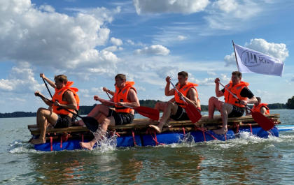 Auf dem Gelaende der Gustav-Heinemann-Bildungsstaette in Bad Malente am Kellersee haben wir fuer den THW Kiel im Rahmen der Saison-vorbereitung 2020 / 21 ein Teambuilding organisiert und durchgefuehrt. Ausgewaehlt haben die THW-Verantwortlichen unser Teambuilding ‚Flossbau und Teamspiele‘. Bei allerbestem Sommerwetter startete unser Trainer Andreas Koester das Programm mit einem koordinativen Teamspiel. Gut aufgewaermt ging es danach an die eigentliche Aufgabe, dem Bau zweier Floesse mit anschliessender Wettfahrt ueber den See. Dazu wurden die Teams „Alt“ und „Jung“ gebildet. Als kleine Zusatzaufgabe galt es, den jeweils Teamaeltesten auf einem SUP-Board hinterherzuziehen. Je Team wurde eine THW-Fahne verteilt, die waehrend der gesamten Wettfahrt sichtbar im Fahrtwind zu wehen hatte.Nachdem beide Teams von unserem Trainer Klaus Kluender mit der Knotentechnik vertraut gemacht wurden, startete bereits in der Bauphase ein heisser Fight um die beste Konstruktion. Am Ende hatte das Team „Alt“ u.a mit Steffen Weinhold, Patrick Wiencek, Pavel Horak, Hendrik Pekelerund Domagoj Duvnjak nicht nur beim Flossbau gegen Team „Jung“ u.a. mit Rune Dahmke und Sven Ehrig die Nase vorn. Auch die Wettfahrt mit dem Floss konnte Team ‚Alt‘ fuer sich entscheiden. Beim abschliessenden, von uns exklusiv am Seeufer angerichteten Buffet fand die Mannschaft um die Trainer Filip Jicha und Christian Sprenger sowie Athletiktrainer Hinrich Brockmann inmitten der sehr anstrengenden Saisonvorbereitung ein wenig Entspannung.