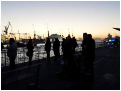 Nach einem Begruessungssekt (alternativ Orangensaft) am Schiffsanleger an den Hamburger Landungsbruecken starten Sie zu einer winterlichen Barkassenfahrt durch den Hamburger Hafen. Auf der gemuetlichen und selbstverstaendlich beheizten Barkasse, die wir exklusiv fuer Sie chartern, servieren wir leckeren Punsch. Ihre Hafenrundfahrt endet am Anleger 'Altona' (Fischmarkt). Von hier aus sind es nur wenige Meter Fussweg zu einem besonders schoen gelegenen Restaurant. Sie geniessen Ihr Menue mit direktem Blick auf die Elbe, die Hafenkraene und das beruehmte Dock 11 von Blohm und Voss. Nach dem Abendessen fuehren wir Sie das Elbufer hinauf zum Hans-Albers-Platz, unmittelbar neben der Reeperbahn. Von hier aus tauchen Sie im Rahmen einer exklusiven und privaten Fuehrung mit viel Witz und Humor in die Welt des beruechtigten Kiezes Deutschlands ein. Sie erfahren u.a., was eine Ausnuechterung auf der Davidswache kostet, ob Frauen einen Blick in die Herbertstrasse riskieren duerfen und ob Sie sich vor Reepschlaegern in acht nehmen muessen. Je nach Wunsch endet Ihre Kiez-Fuehrung in einer der vielen urigen Kiez-Lokalitaeten, die wir ganz nach Ihrem Geschmack auswaehlen.