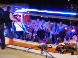 Von hier aus startet Ihre exklusive Fuehrung ueber den Hamburger Kiez. Auf humorvolle Weise erfahren Sie viel Interessantes ueber die schraege und bunte Reeperbahn. Ihr Abendessen nehmen Sie entweder in einem stimmungsvollen Hamburger Szene-Lokal auf dem Kiez oder aber in einem direkt an der Elbe gelegenen Restaurant mit gehobener Kueche ein. Nach dem Abendessen erwartet Sie unweit des Restaurants eine exklusiv fuer Sie gecharterte Barkasse, auf der dann bei einer Fahrt durch den Hamburger Hafen bei Tanzmusik von einem Discjockey so richtig gefeiert werden darf. Die Barkasse ist extra fuer Feierlichkeiten umgebaut worden und stellt entsprechend Raum und Infrastruktur zur Verfuegung. Zudem ist die Barkasse selbstverstaendlich beheizt. Nach der Schiffsfeier (die Dauer bestimmen Sie) legen Sie an den Hamburger Landungsbruecken an.