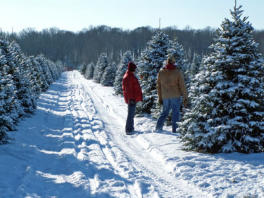 wir die Tannenbaeume bereits geschlagen zum Aussuchen bereit.